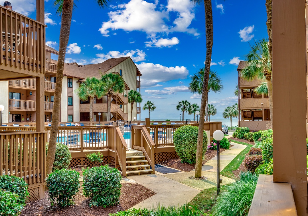 The complex is centered around a lush tropical courtyard with a large outdoor pool and deck. The deck includes lounge chairs for you to enjoy a day around the pool. There are multiple outdoor grills located on each side of complex as well. In front of Anchorage I and Anchorage II, you will find a playground, memorial park, exercise trail, private walkway to the ocean, outdoor showers and private beach gazebos for our guest to enjoy. Elevators and handicap ramps are located on each side of the complex and are easily accessible. Condos feature full size washer/dryer, flat screen TVs, and high-speed internet. Ample parking is available.