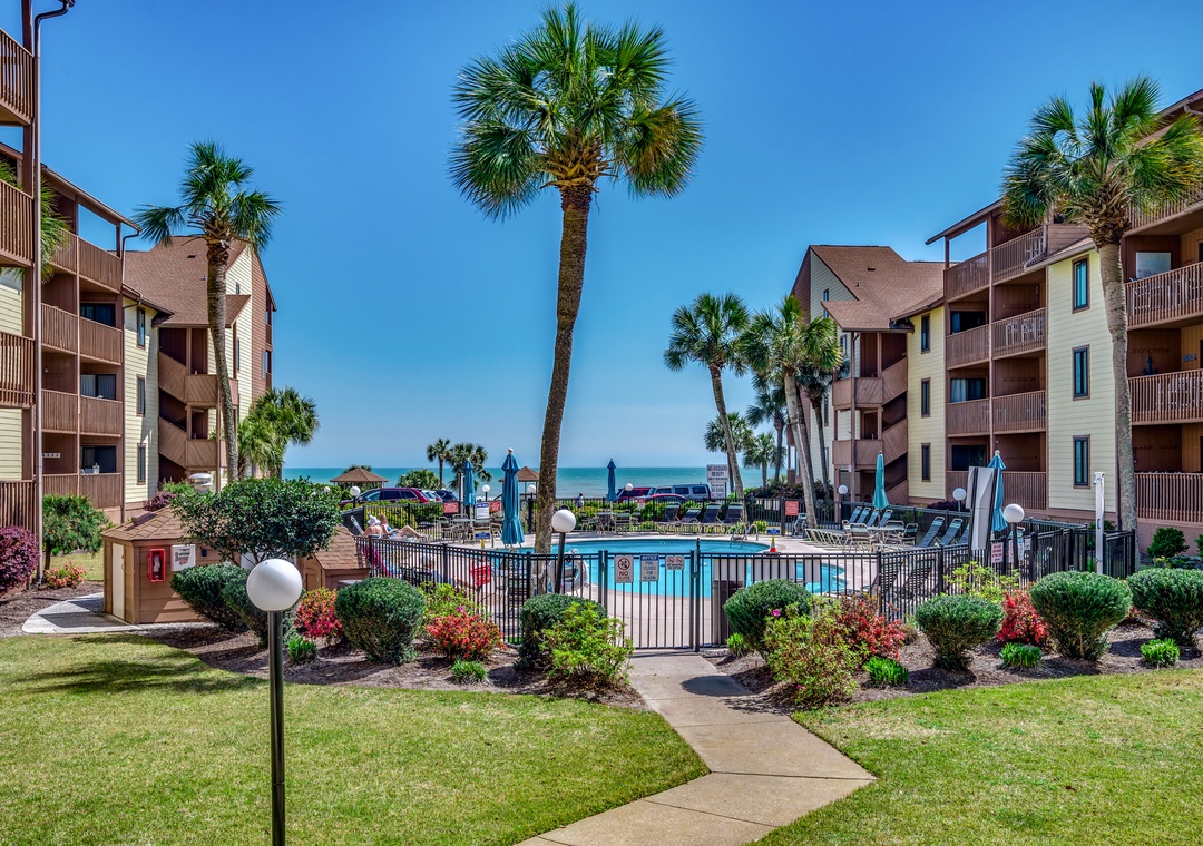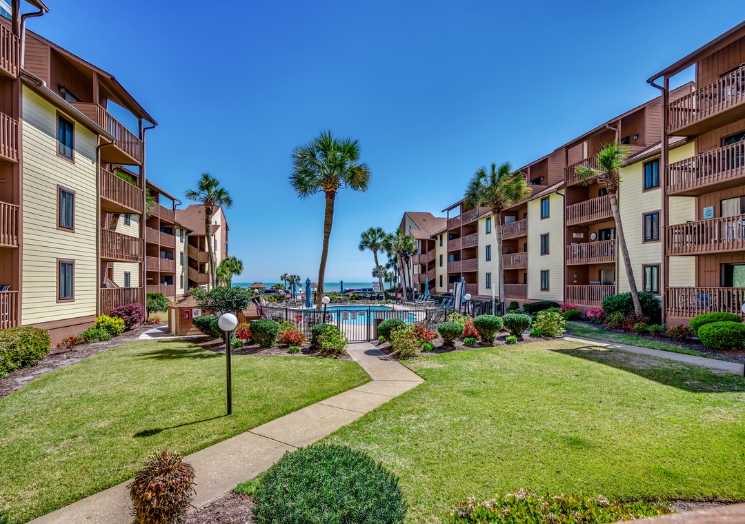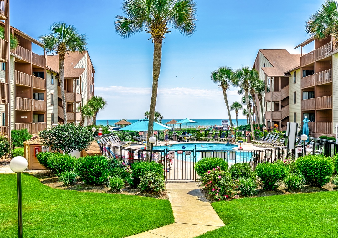 The complex is centered around a lush tropical courtyard with a large outdoor pool and deck. The deck includes lounge chairs for you to enjoy a day around the pool. There are multiple out door grills located on each side of complex as well as outside storage for beach chairs, boogie boards and sand toys. In front of Anchorage I and Anchorage II, you will find a playground, memorial park, exercise trail, private walkway to the ocean, outdoor showers and private beach gazebos for our guest to enjoy. Elevators and handicap ramps are located on each side of the complex and are easily accessible. Condos feature full size washer/dryer, flat screen TVs, and high-speed internet. Ample parking is available.