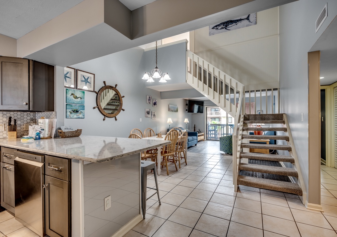 Experience the ultimate – luxury, comfort, and connivence! Begin your day sipping your morning beverage and enjoying a peaceful view of the ocean from one of two balconies in this spacious three-bedroom, two-bath condominium, ideally situated in the heart of Myrtle Beach. Enjoy the sun and ocean surf any time of day but upon return from the beach pure luxury awaits in the fully furnished interiors crafted to fulfill your every desire. Whether preparing a snack for the family or entertaining guests, convenience is the order of the day in this fully contemporary kitchen featuring an eat-in bar with seating for four plus dining room with seating for six. Unwind and rejuvenate in the expansive bedrooms. For those needing an assist, experience the ease of the walk-in shower with handicapped friendly seating and grab bars in the primary bathroom. Wind down with some quiet time on the balconies and behold the captivating sunsets with their magical glow upon the shimmering tides. With convenient proximity to the city's dynamic attractions, ranging from exquisite gastronomy to exhilarating amusement, this Myrtle Beach sanctuary ensures an unforgettable retreat. Secure your piece of paradise today! Anchorage II is centered around a lush tropical courtyard with a large outdoor pool and deck. The deck includes lounge chairs for you to enjoy a day around the pool. There are multiple outdoor grills located on each side of the complex as well as outside storage for beach chairs, boogie boards and sand toys. In front of Anchorage II, you will find a playground, memorial park, exercise trail, private walkway to the ocean, outdoor showers and private beach gazebos for your enjoyment. Elevators and handicap ramps are located on each side of the complex and are easily accessible. This condo features full size washer/dryer, flat screen SmartTVs, and high-speed internet. Ample parking is available.