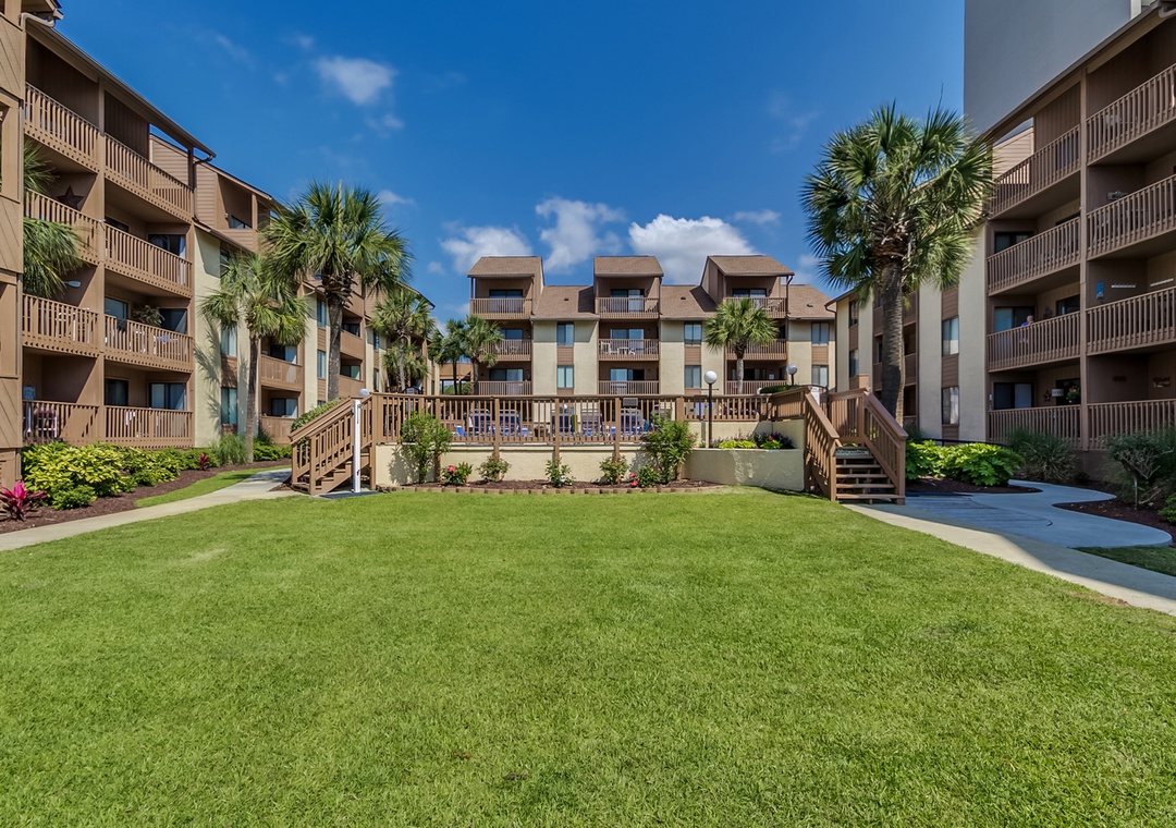 The complex is centered around a lush tropical courtyard with a large outdoor pool and deck. The deck includes lounge chairs for you to enjoy a day around the pool. There are multiple outdoor grills located on each side of complex as well. In front of Anchorage I and Anchorage II, you will find a playground, memorial park, exercise trail, private walkway to the ocean, outdoor showers and private beach gazebos for our guest to enjoy. Elevators and handicap ramps are located on each side of the complex and are easily accessible. Condos feature full size washer/dryer, flat screen TVs, and high-speed internet. Ample parking is available.