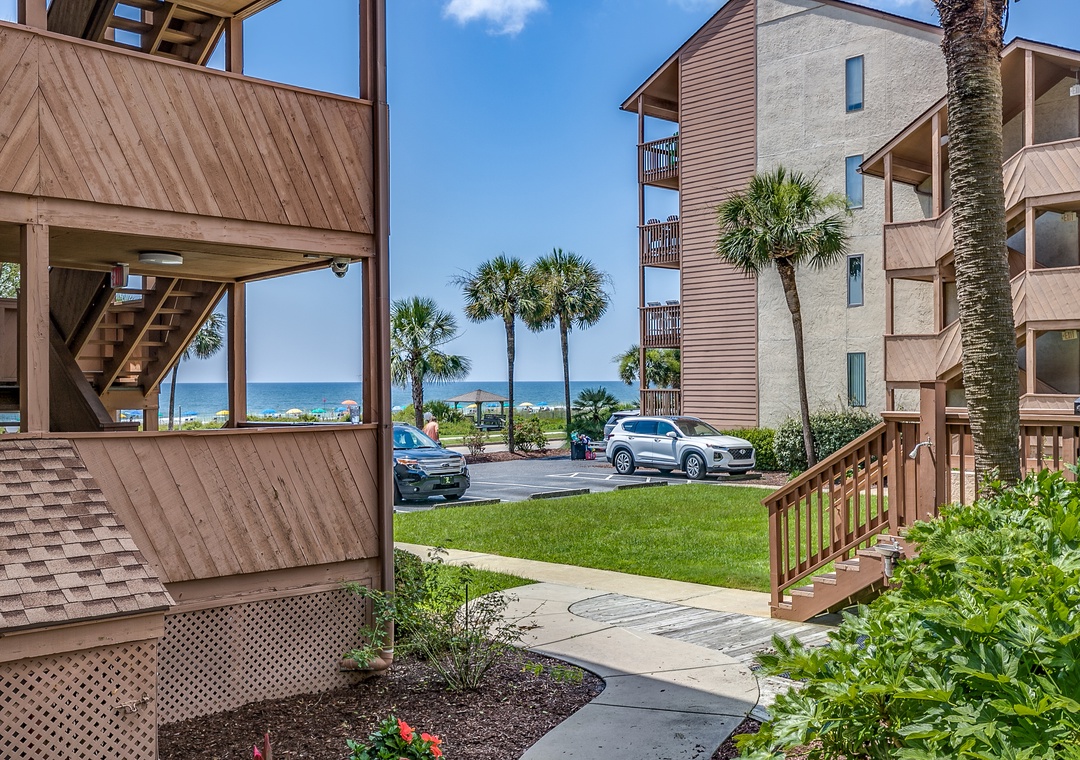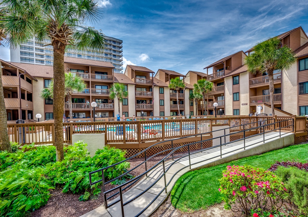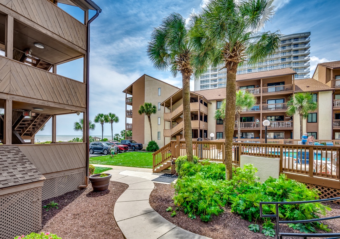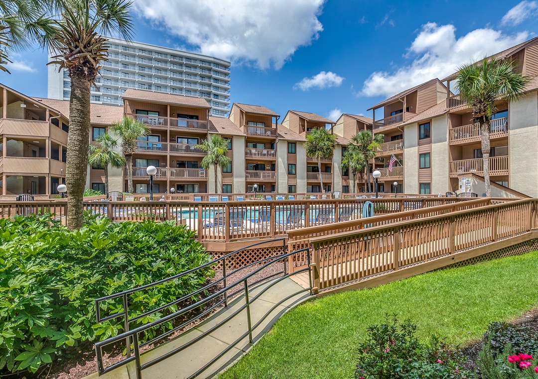 The complex is centered around a lush tropical courtyard with a large outdoor pool and deck. The deck includes lounge chairs for you to enjoy a day around the pool. There are multiple outdoor grills located on each side of complex as well. In front of Anchorage I and Anchorage II, you will find a playground, memorial park, exercise trail, private walkway to the ocean, outdoor showers and private beach gazebos for our guest to enjoy. Elevators and handicap ramps are located on each side of the complex and are easily accessible. Condos feature full size washer/dryer, flat screen TVs, and high-speed internet. Ample parking is available.