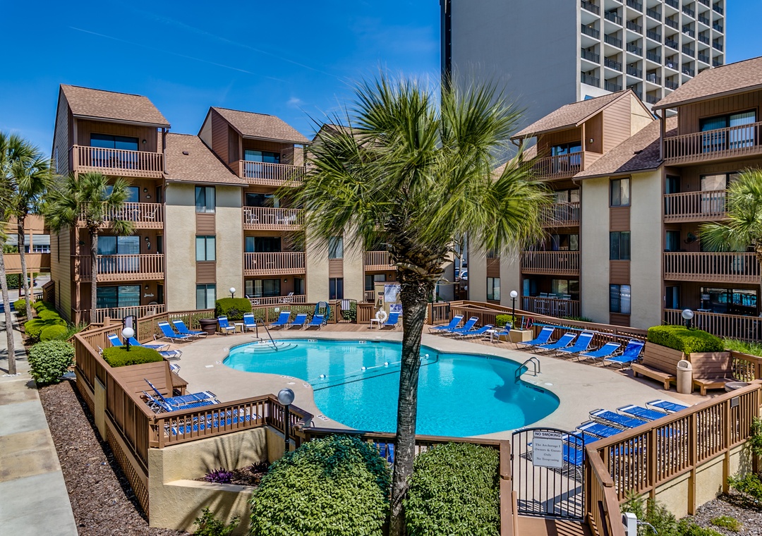 The complex is centered around a lush tropical courtyard with a large outdoor pool and deck. The deck includes lounge chairs for you to enjoy a day around the pool. There are multiple outdoor grills located on each side of complex as well. In front of Anchorage I and Anchorage II, you will find a playground, memorial park, exercise trail, private walkway to the ocean, outdoor showers and private beach gazebos for our guest to enjoy. Elevators and handicap ramps are located on each side of the complex and are easily accessible. Condos feature full size washer/dryer, flat screen TVs, and high-speed internet. Ample parking is available.