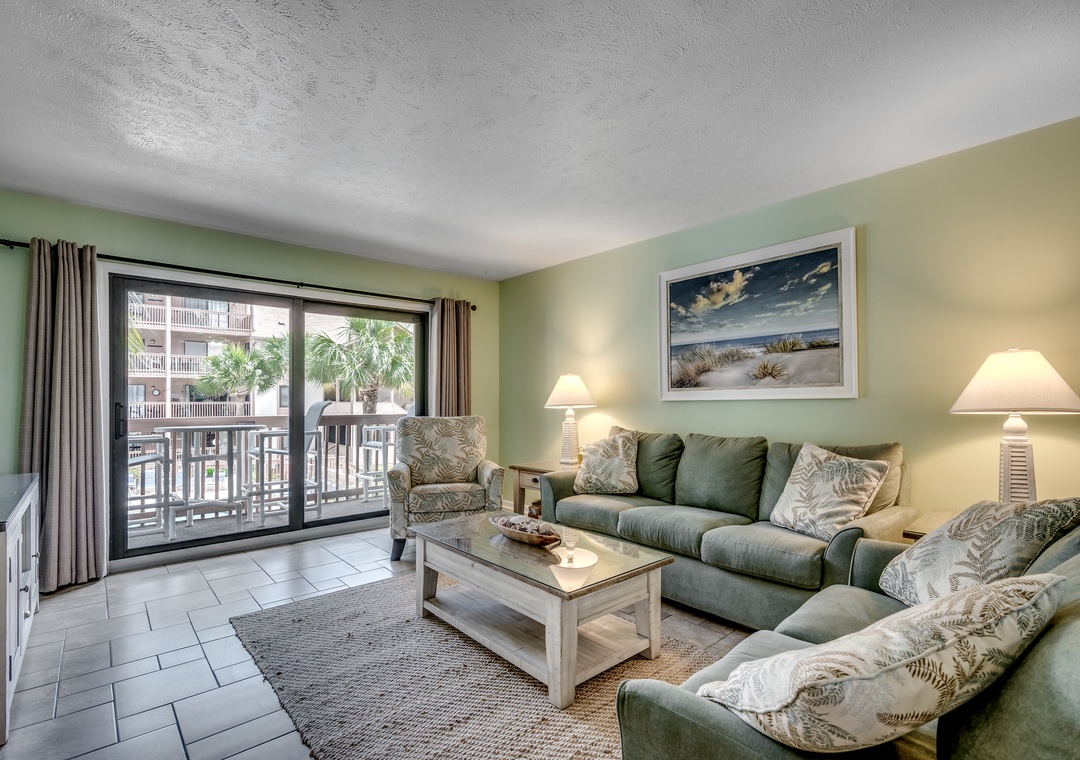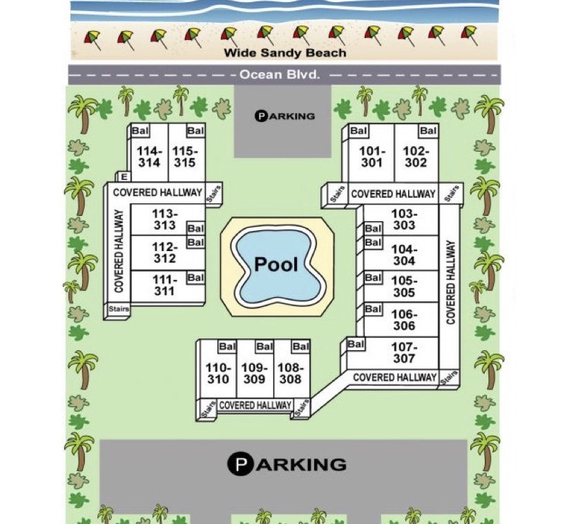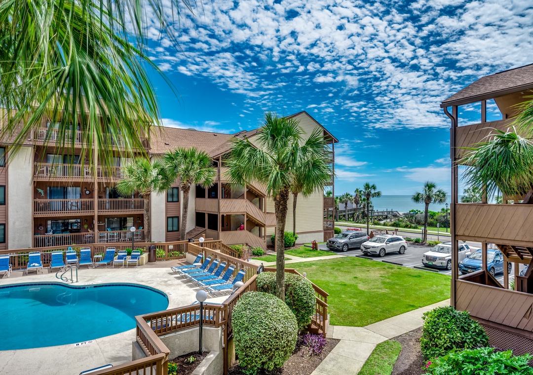 The complex is centered around a lush tropical courtyard with a large outdoor pool and deck. The deck includes lounge chairs for you to enjoy a day around the pool. There are multiple outdoor grills located on each side of complex as well. In front of Anchorage I and Anchorage II, you will find a playground, memorial park, exercise trail, private walkway to the ocean, outdoor showers and private beach gazebos for our guest to enjoy. Elevators and handicap ramps are located on each side of the complex and are easily accessible. Condos feature full size washer/dryer, flat screen TVs, and high-speed internet. Ample parking is available.