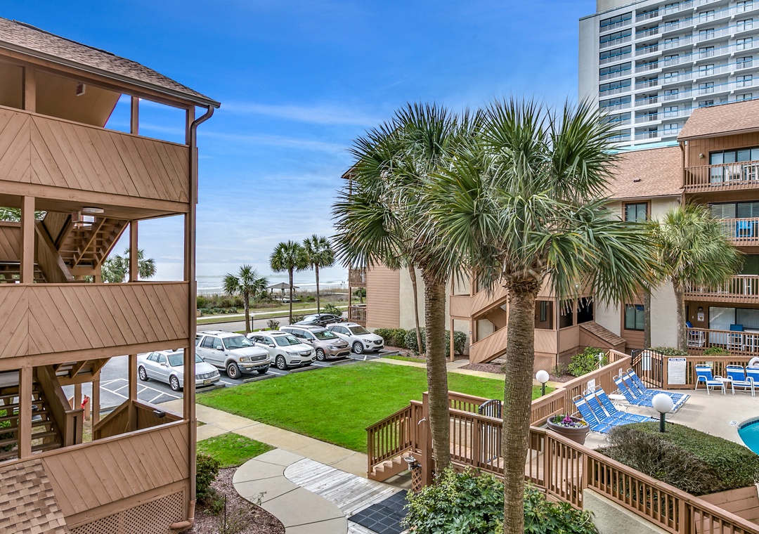 The complex is centered around a lush tropical courtyard with a large outdoor pool and deck. The deck includes lounge chairs for you to enjoy a day around the pool. There are multiple outdoor grills located on each side of complex as well. In front of Anchorage I and Anchorage II, you will find a playground, memorial park, exercise trail, private walkway to the ocean, outdoor showers and private beach gazebos for our guest to enjoy. Elevators and handicap ramps are located on each side of the complex and are easily accessible. Condos feature full size washer/dryer, flat screen TVs, and high-speed internet. Ample parking is available.