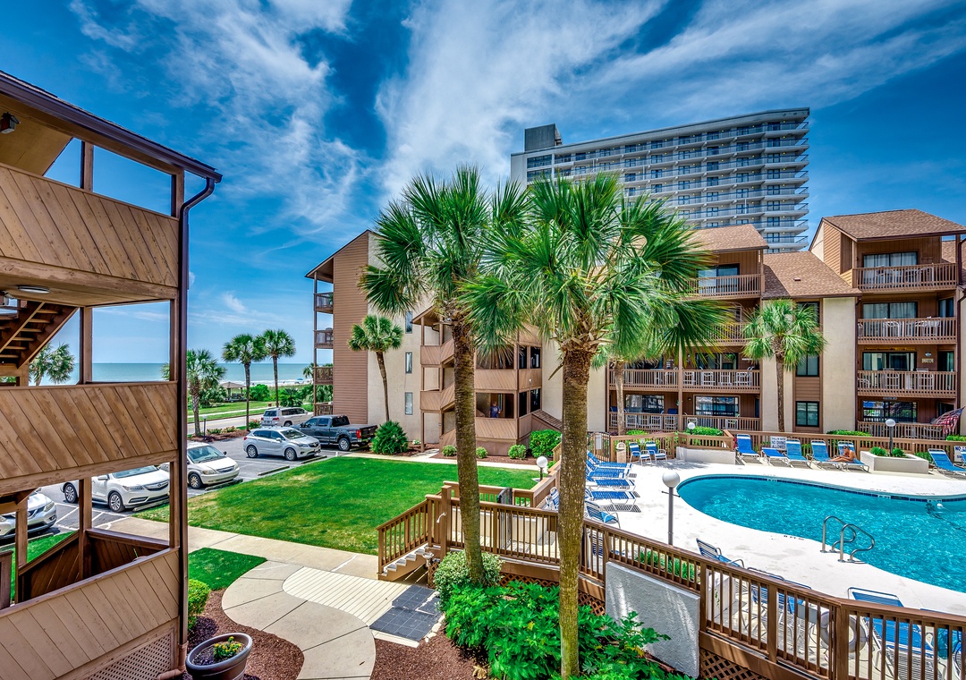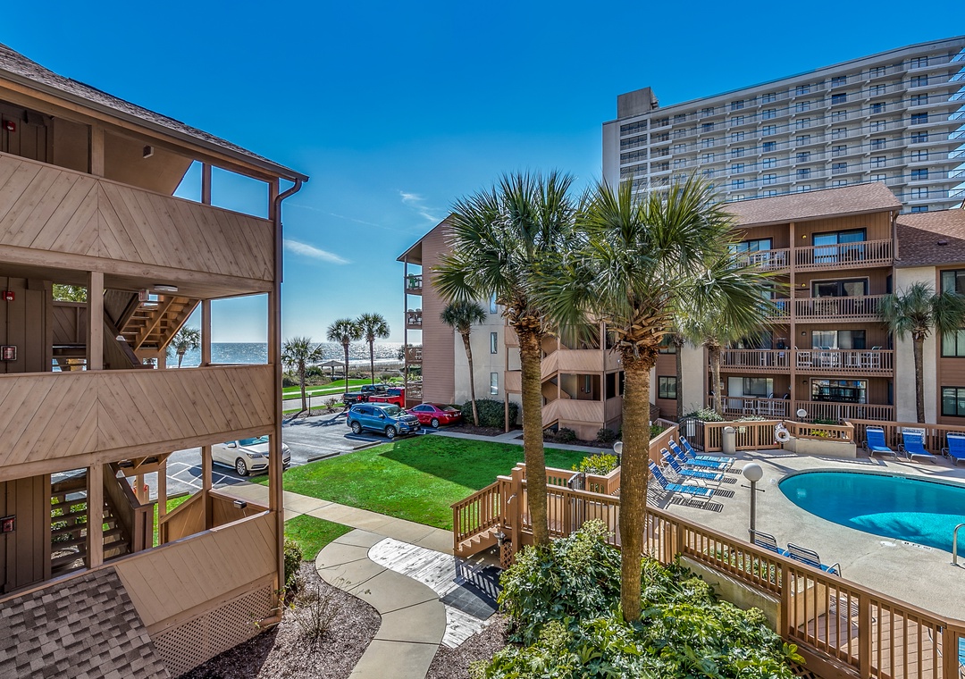 The complex is centered around a lush tropical courtyard with a large outdoor pool and deck. The deck includes lounge chairs for you to enjoy a day around the pool. There are multiple outdoor grills located on each side of complex as well. In front of Anchorage I and Anchorage II, you will find a playground, memorial park, exercise trail, private walkway to the ocean, outdoor showers and private beach gazebos for our guest to enjoy. Elevators and handicap ramps are located on each side of the complex and are easily accessible. Condos feature full size washer/dryer, flat screen TVs, and high-speed internet. Ample parking is available.