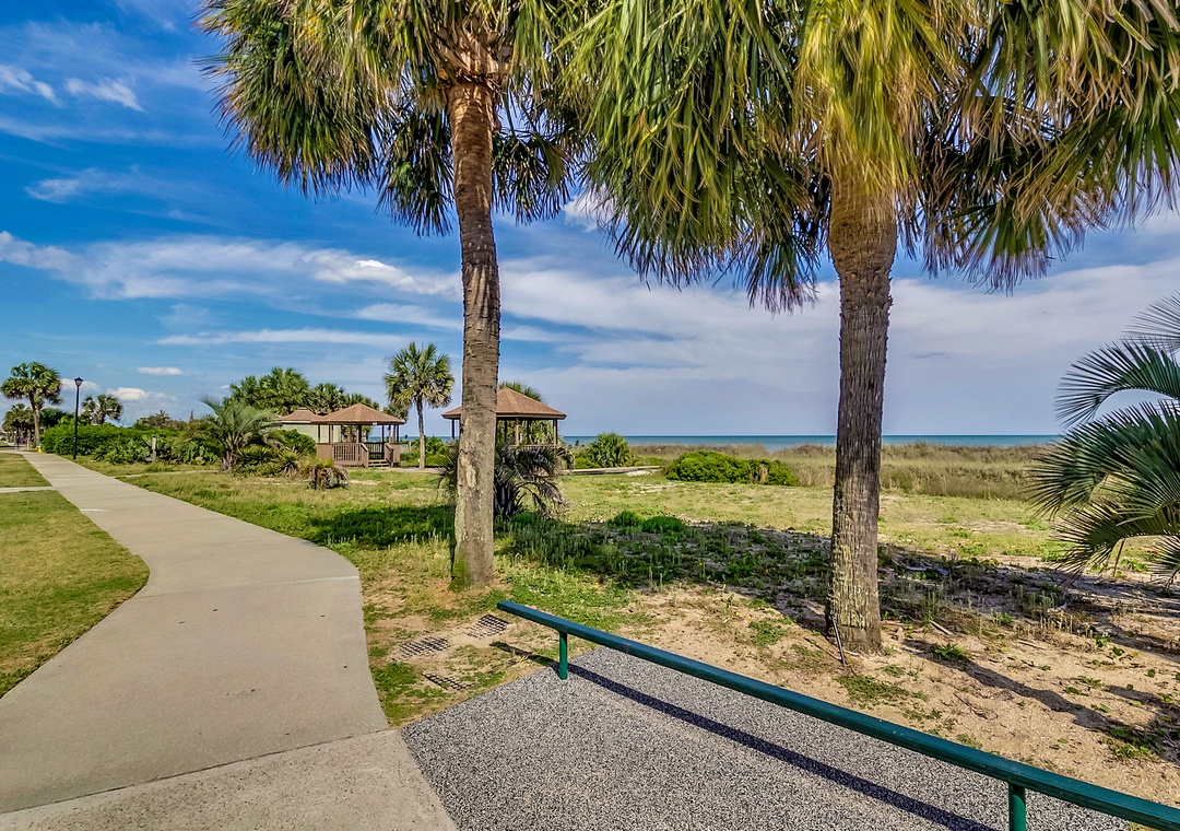 The complex is centered around a lush tropical courtyard with a large outdoor pool and deck. The deck includes lounge chairs for you to enjoy a day around the pool. There are multiple out door grills located on each side of complex as well as outside storage for beach chairs, boogie boards and sand toys. In front of Anchorage I and Anchorage II, you will find a playground, memorial park, exercise trail, private walkway to the ocean, outdoor showers and private beach gazebos for our guest to enjoy. Elevators and handicap ramps are located on each side of the complex and are easily accessible. Condos feature full size washer/dryer, flat screen TVs, and high-speed internet. Ample parking is available.