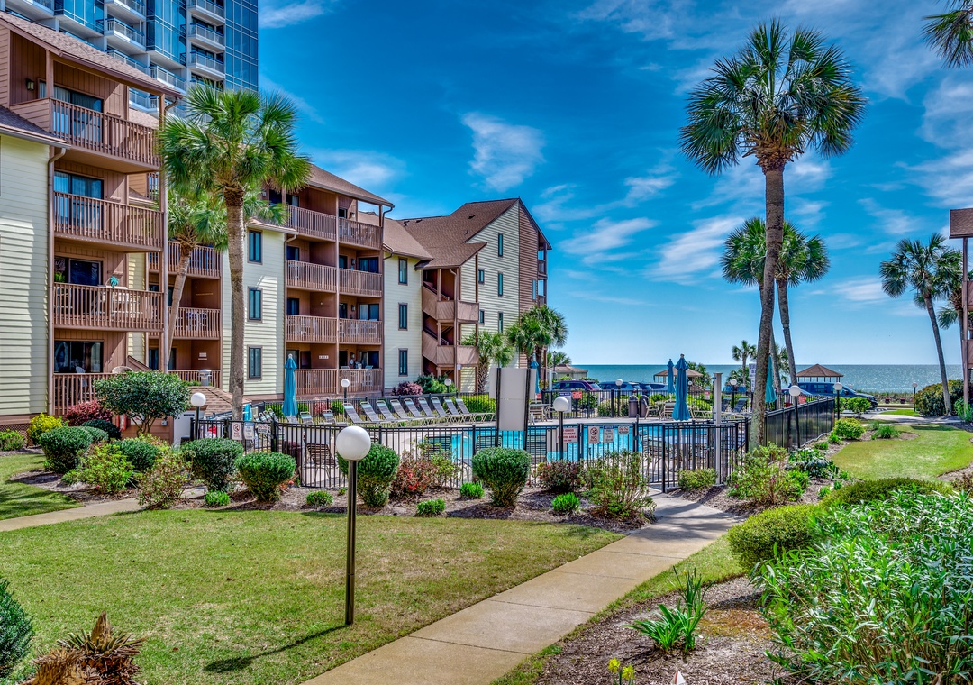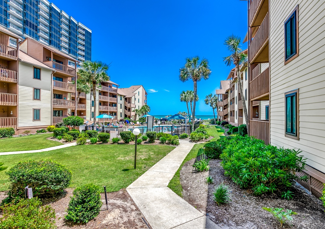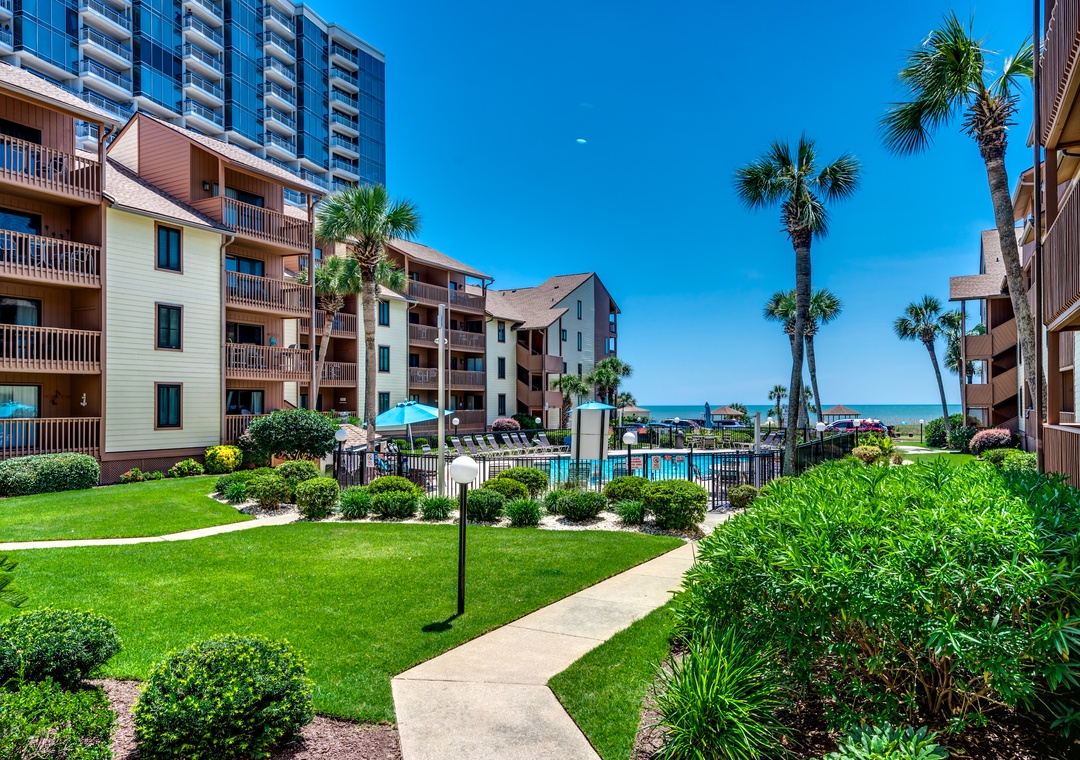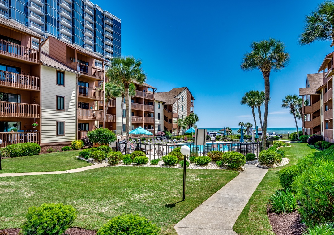 The complex is centered around a lush tropical courtyard with a large outdoor pool and deck. The deck includes lounge chairs for you to enjoy a day around the pool. There are multiple out door grills located on each side of complex as well as outside storage for beach chairs, boogie boards and sand toys. In front of Anchorage I and Anchorage II, you will find a playground, memorial park, exercise trail, private walkway to the ocean, outdoor showers and private beach gazebos for our guest to enjoy. Elevators and handicap ramps are located on each side of the complex and are easily accessible. Condos feature full size washer/dryer, flat screen TVs, and high-speed internet. Ample parking is available.